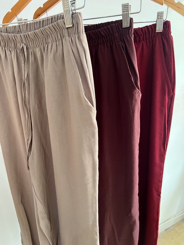 Pantalón wide leg de tencel doble con elástico en la cintura y lazo para ajustar.